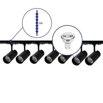 | Manufacturer Name | Complete Straight 3-meter 1-Phase Track Set Black incl. 7x Spot fixture + GU10 2700K 3W Dim – 2x 1.5 | |