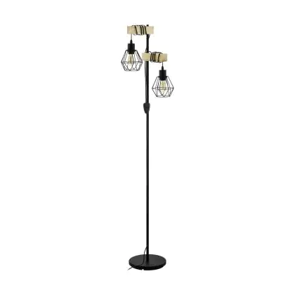 Eglo Floor Lamp Townshend 5 Steel Wood Black | IP20 - Suitable for 2x E27