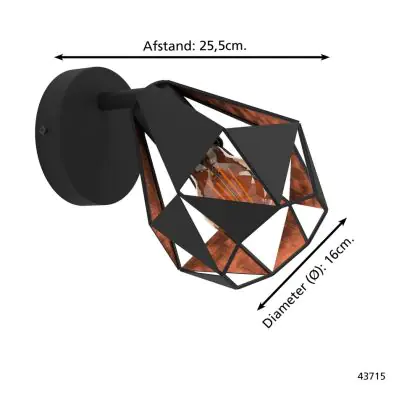 Eglo Wall Light Carlton 7 Steel Black Copper | IP20 - Suitable for 1x E27