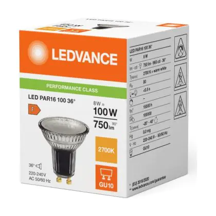 Ledvance LED PAR16 GU10 Reflector 8W 750lm 36D - 827 Extra Warm White | Replaces 80W