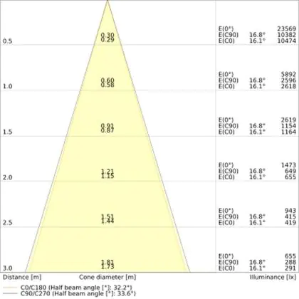 ![]() The colour code is a combination of colour rendering (CRI) and light colour (Kelvin). The first number indicates the colour rendering (1 = very poor colour rendering, 9 = maximum colour fastness). The second and third number contains the light colour. Example: the colour code 830 consists of good colour rendering (8) and warm white light (3000K). |