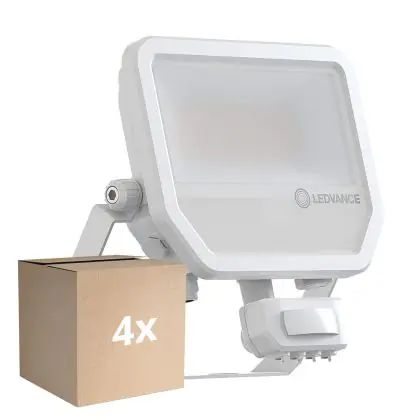 Multipack 4x Ledvance LED Floodlight Aluminium White 41W 6000lm 100D - 840 Cool White | IP65 - Motion And Light Sensor - Symmetrical