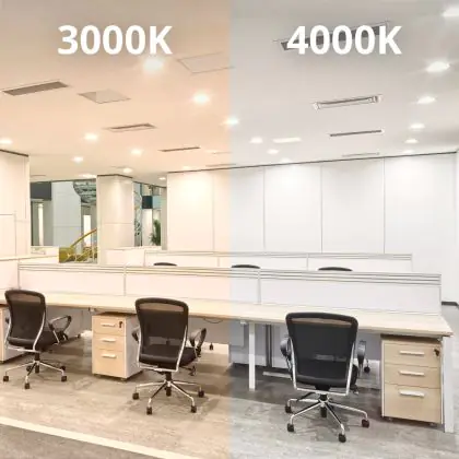 The colour 4000K represents cold white light and is commonly used in areas such as offices and other places where people need to be productive because it helps to keep them focussed and alert.