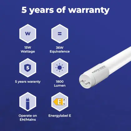 | Manufacturer Name | Noxion Avant LEDtube T8 Standard (EM/Direct) 1200mm 15W/865 (36W eqv.) with Starter | |